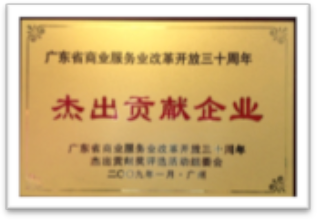 广东省商业服务业改革开放30周年杰出贡献企业2009-01